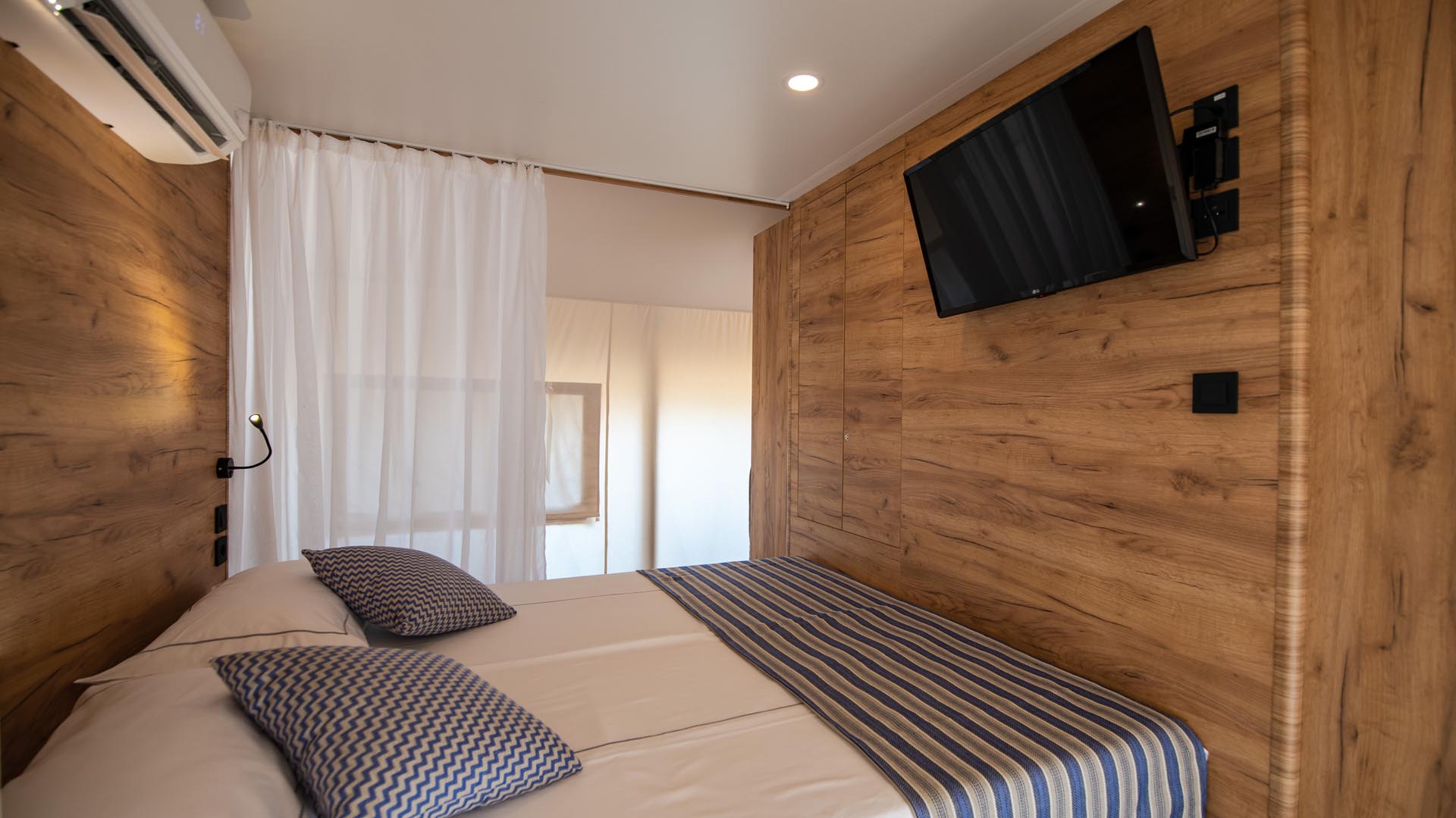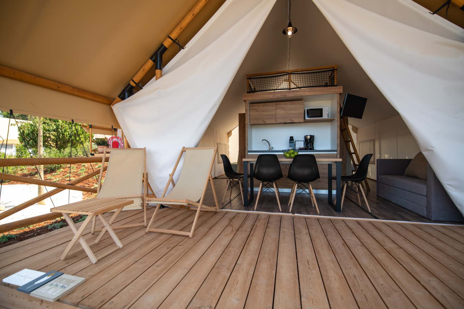 The Pomer Beach stretches around the peninsula from the Marina and through the glamping site at Arena One 99. It is naturally rocky and pebbly and attracts many beachgoers for its scenic setting in the emerald landscape of the Medulin Bay. The pine forest of Pomer offers generous shade close to the shore, and at the glamping site, you have sunbeds for a plus of comfort.