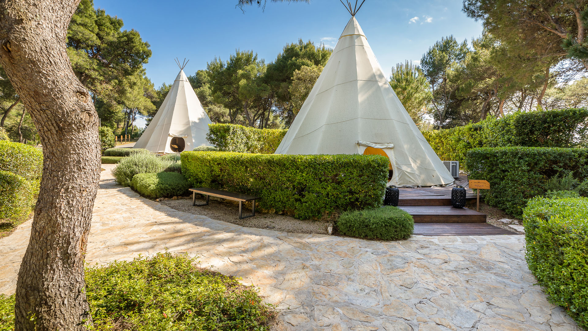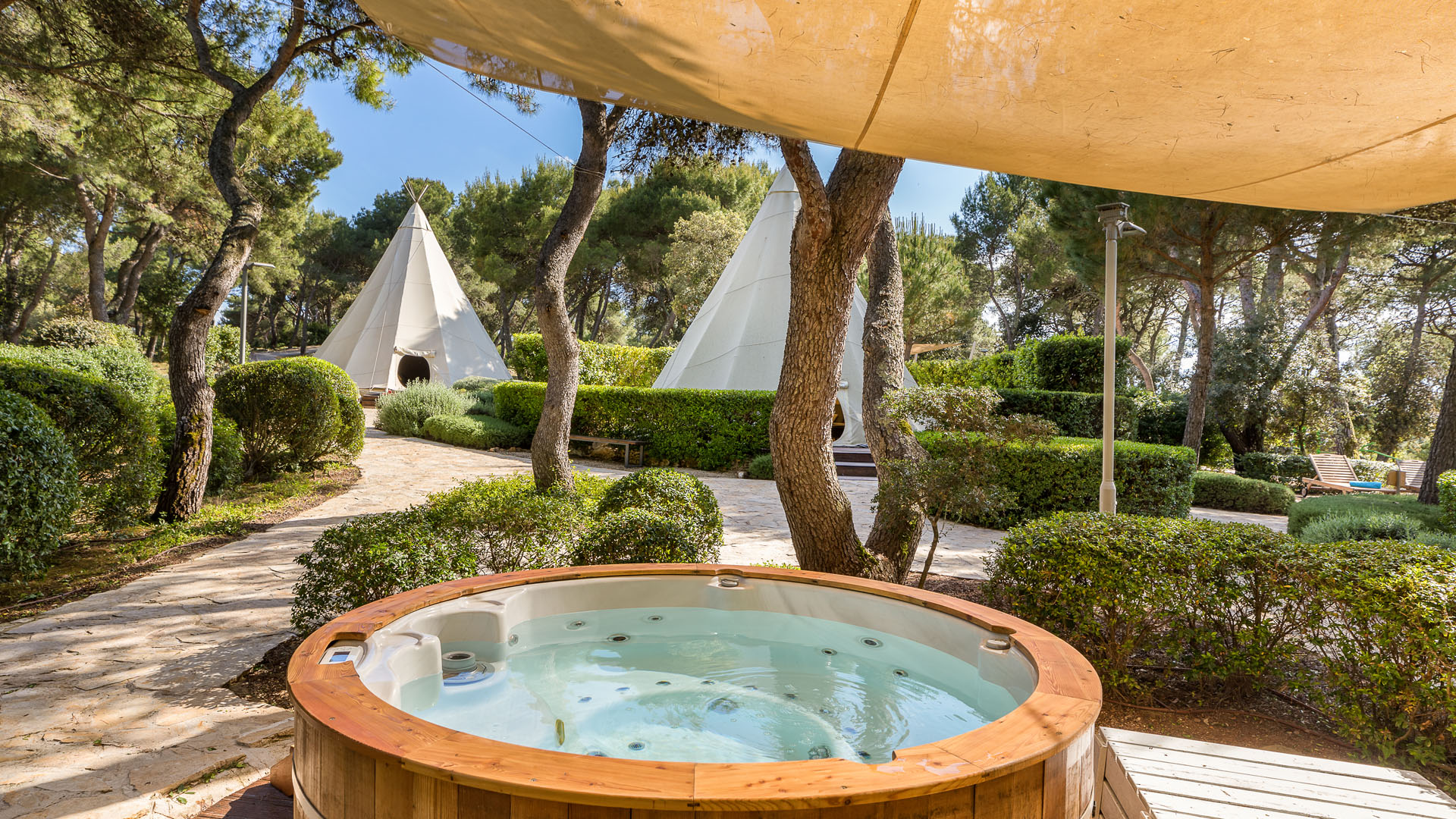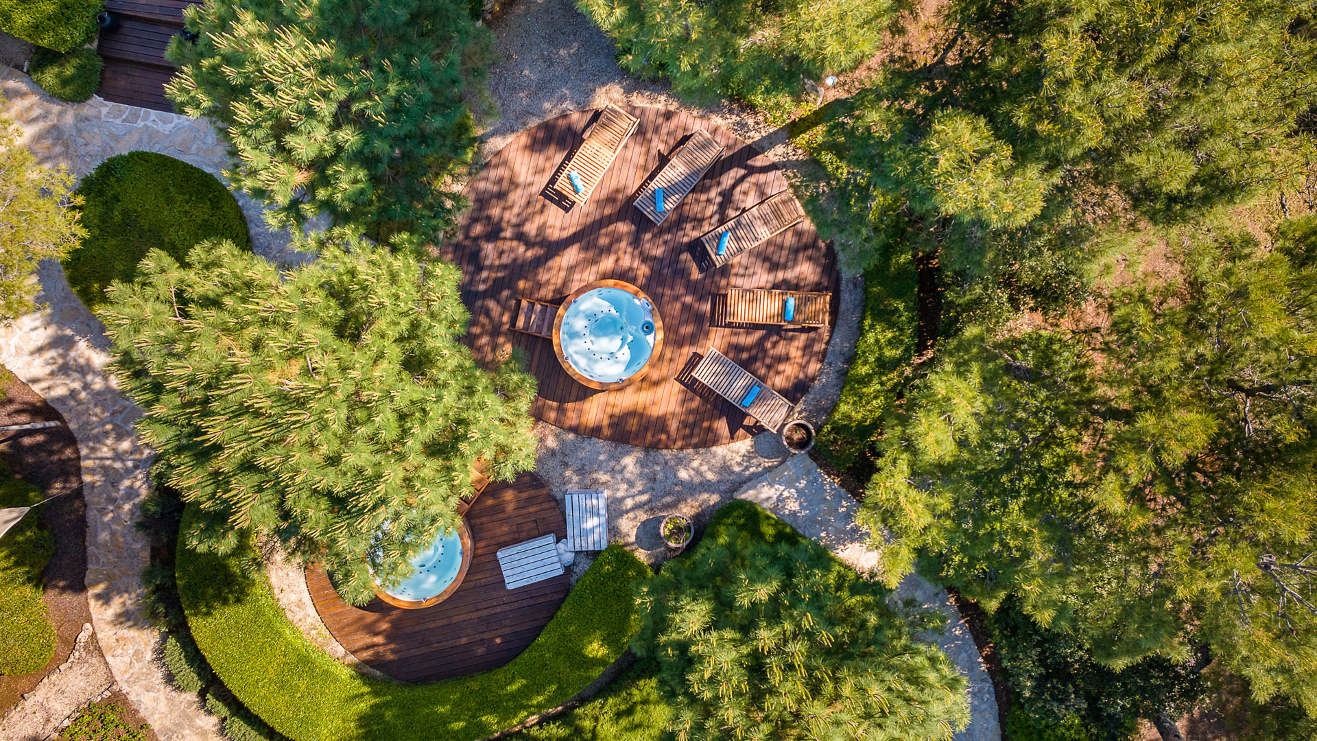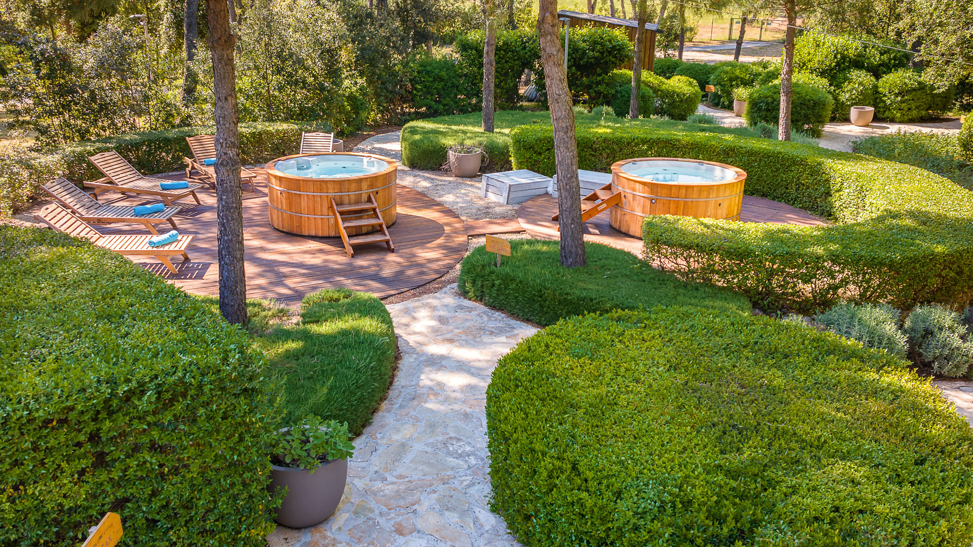 U mediteranskom vrtu okruženom mirisom mora, borova i aromatičnog bilja - lavande, kadulje, ružmarina i timijana, nalaze se oaze za opuštanje, kupelji, kišna soba i posebna platforma za joga programe. Holistički pristup, zajedno s ritualnim i kozmetičkim tretmanima, dio je ponude posvećene opuštanju tijela i uma.